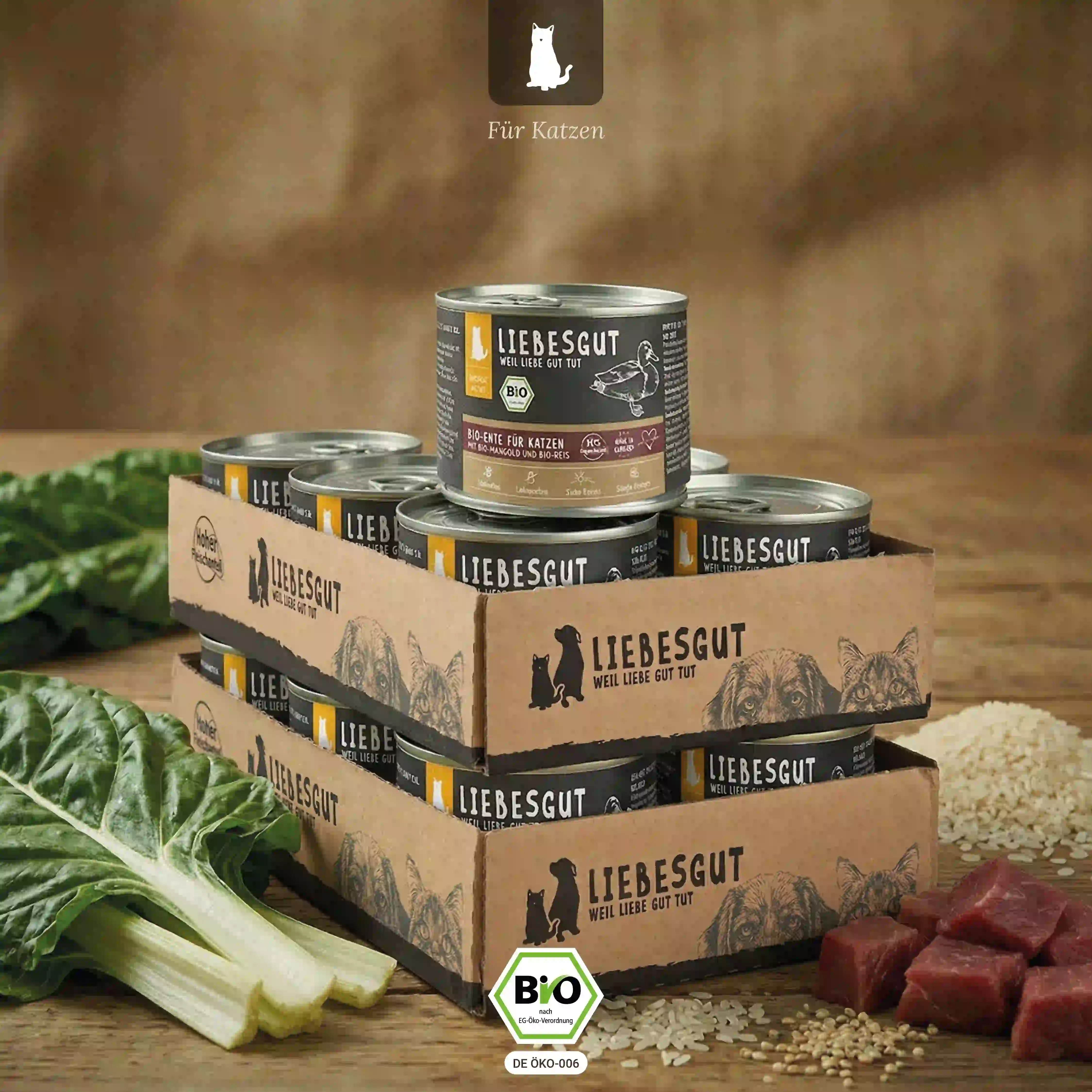 Die Rohstoffe für unser Bio-Nassfutter stammen von zertifizierten Bio-Bauernhöfen aus der Region Oberbayern, wo eine artgerechte Aufzucht und Haltung der Nutztiere oberste Priorität haben. Wir lehnen Massentierhaltung und Tierversuche strikt ab.