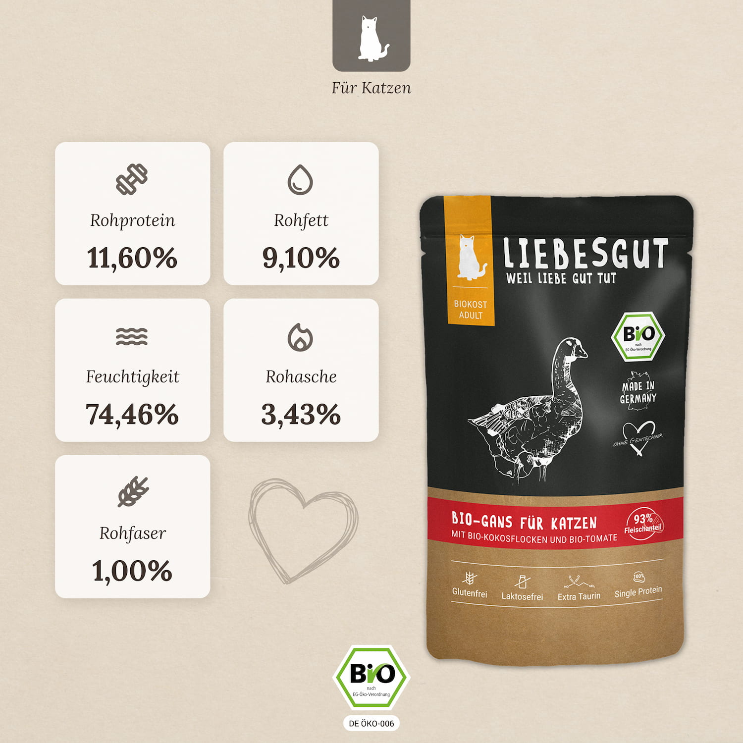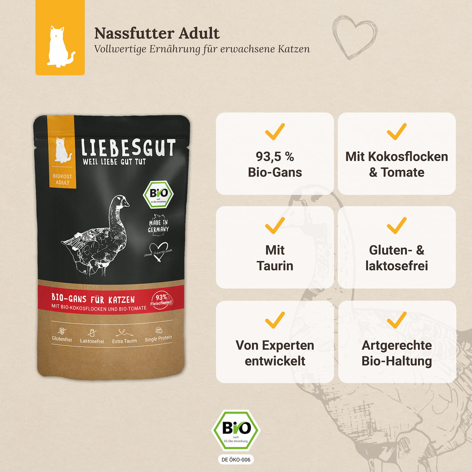 - 93,5 % Bio-Gans – leicht verdauliche Proteinquelle für Vitalität
