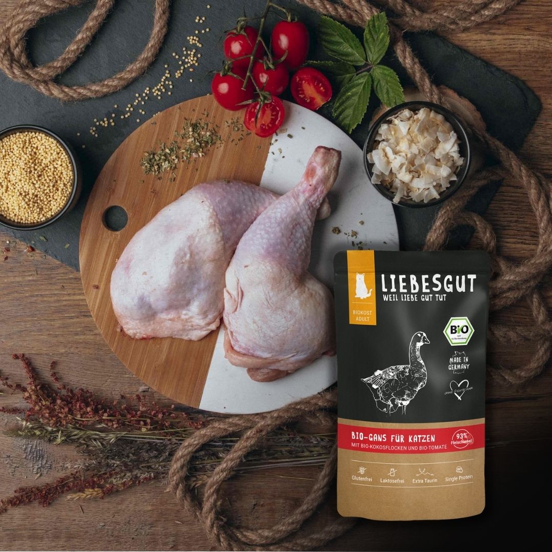 - Fütterungsempfehlung Bio-Ente mit Bio-Mangold und Bio-Reis Bio-Rind mit Bio-Karotte und Bio-Amaranth Bio-Gans mit Bio-Ko... Mehr lesen