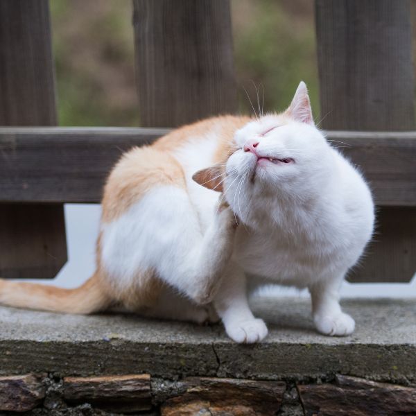 Vermehrtes Kratzen an Kopf, Nacken oder Pfoten sowie damit zusammenhängendes Beißen/Knabbern an den Pfoten